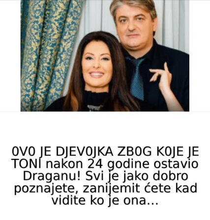 0V0 JE DJEV0JKA ZB0G K0JE JE TONl nakon 24 godine ostavio Draganu! Svi je jako dobro poznajete, zanijemit ćete kad vidite ko je ona….