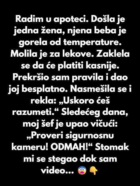 Sledećeg dana, moj šef je upao vičući: „Proveri sigurnosnu kameru! ODMAH!“ Gledali smo kako joj predajem kesu… ali onda mi se stomak stegao kad sam video ovu ženu kako, nakon što sam se okrenuo, tiho ubacuje nešto ispod police sa balzamima za usne pre nego što je otišla.