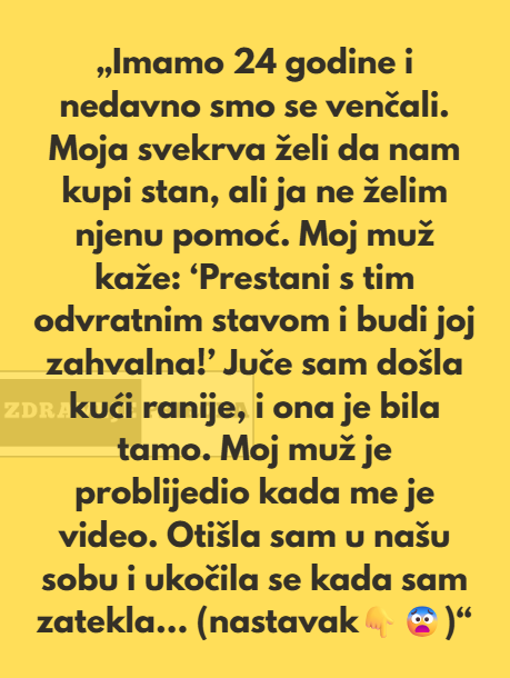 Imamo 24 godine i nedavno smo se venčali. Moja svekrva želi da nam kupi stan, ali ja ne želim njenu pomoć. Moj muž kaže: