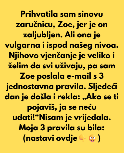 Vjenčanje je veliko i važno i želim da svi uživaju. Zato sam Zoe poslala e-mail sa 3 jednostavne smjernice.