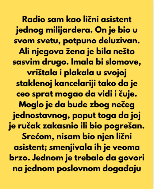 Radio sam kao lični asistent jednog milijardera. On je bio u svom svetu, potpuno deluzivan. Ali njegova žena je bila nešto sasvim drugo.