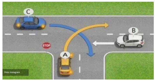 To u praksi znači da vozilo A mora da ostane potpuno zaustavljeno sve dok vozila B i C bezbjedno ne prođu kroz raskrsnicu.