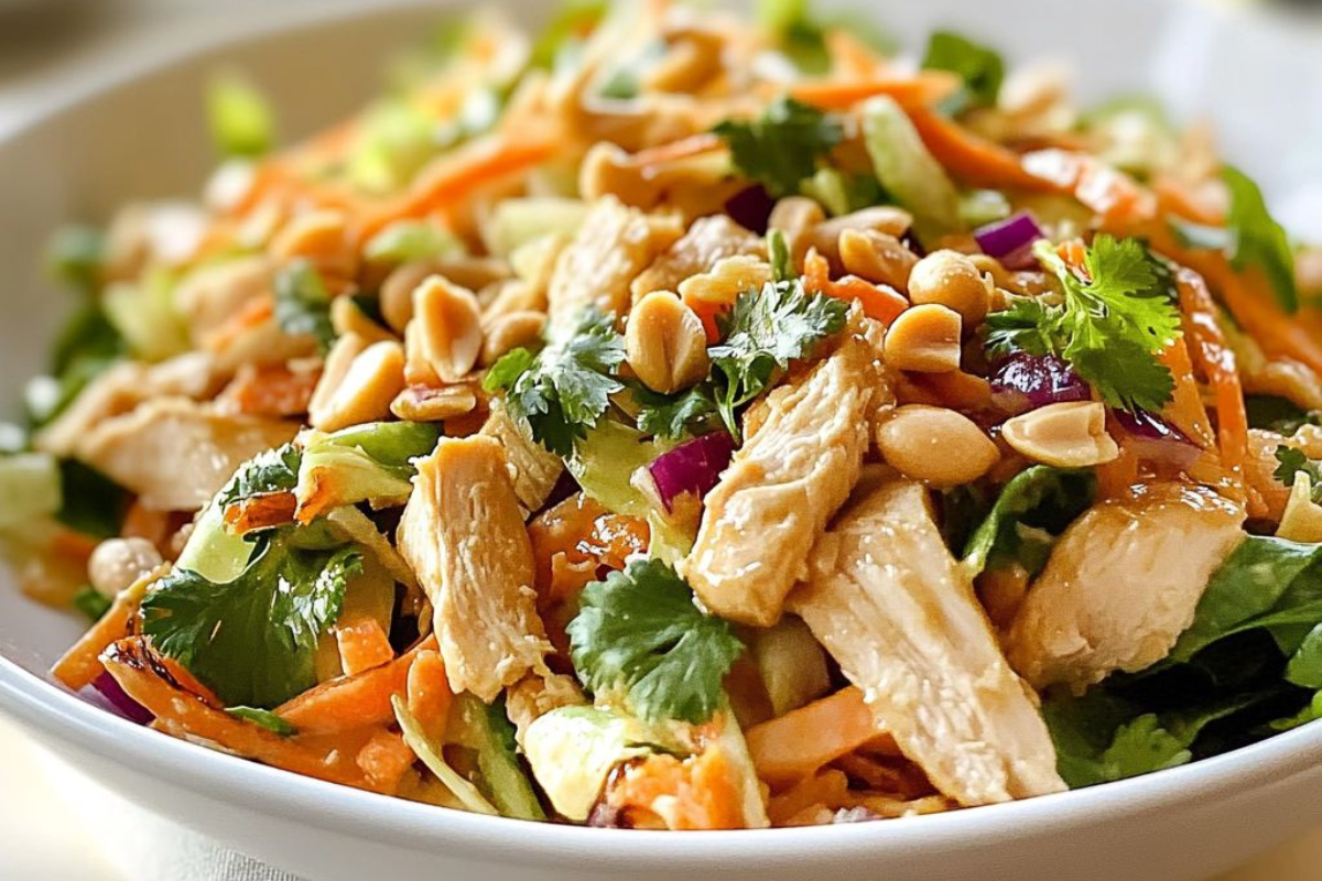 - U zdjeli pomiješajte piletinu, susam, sjeckani praziluk, prženi slani kikiriki i kiselu pavlaku.