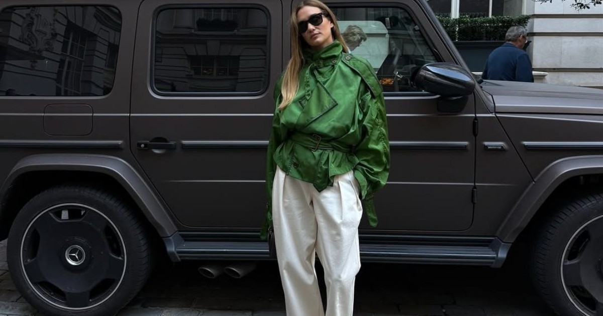 Ako postoji definicija effortless šika, onda je to ona. Cropped zelena kabanica u kombinaciji sa širokim pantalonama i elegantnim crnim salonkama – spoj koji odiše nenametljivim luksuzom.